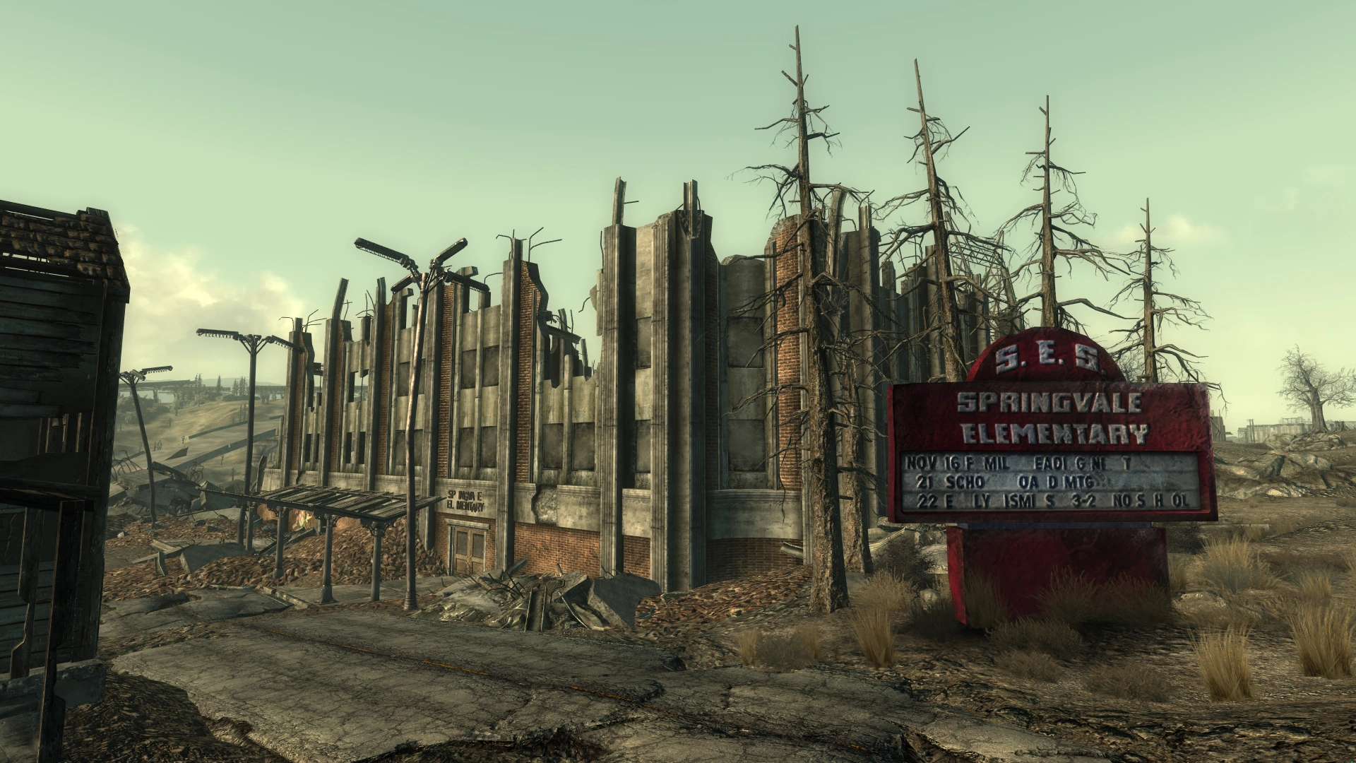 Feb. 25th, 2015 09:28 amThe Capital Wasteland is a difficult place for people from other worlds to acclimate to. Fawkes hasn't brought many people to visit, but he's been there when his friend's done as much, and he's seen the looks on new arrivals' faces. It's only fair, he thinks, to make it gradual for Feuilly; he's managed to reach the Bar through a door northwest of Springvale and Megaton, in what's left of a barn. It provides a broad view and an opportunity to turn around and go back before it's too late.